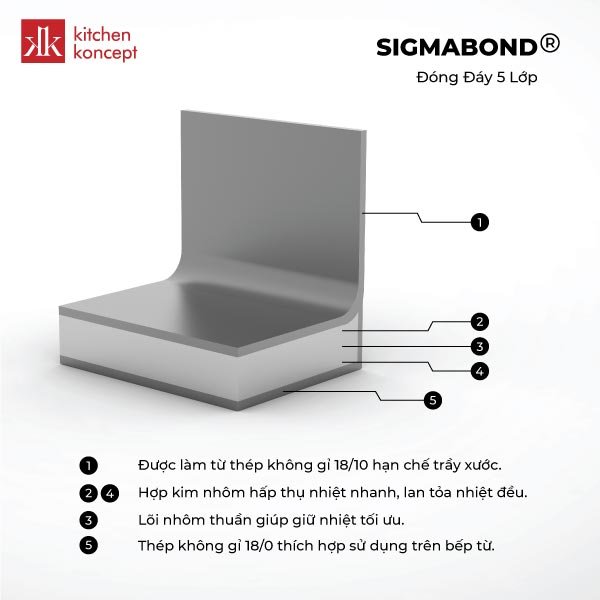 Bộ nồi ZWILLING® Prime 4 món cao cấp với công nghệ đóng đáy đặc biệt SIGMABOND 5 lớp. Giúp nhiệt lượng được phân phối nhanh và đều đến toàn bộ thân nồi.